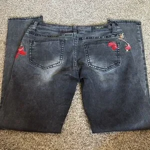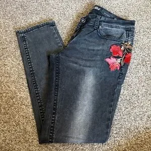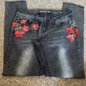 Grace Black Skinny Jeans with Red Floral Embroidery