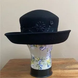 VTG BETMAR New York Black Wool Floral Design Hat