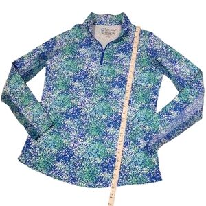 Ibkul Long Sleeve Zip Mock Neck Painted Blue Green Sun Shirt Women's Size XS