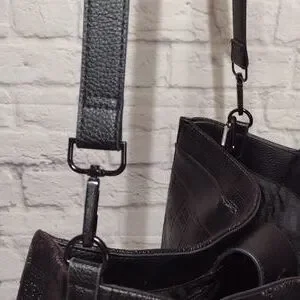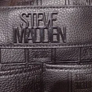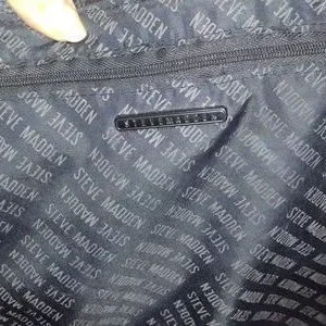 Elevate your style with the Steve Madden Black Bag. Perfect for any occasion, this sleek and versatile bag is a must-have accessory. Please see photos and video. This bag is huge!! Call-outs: Missing top handles, scratches on hardware where you adjust the straps, small corner rubbing on the bottom, the inside is great! If you refurbish bags or know someone that could this is a diamond in the rough absolutely worth fixing this bag it has so much potential.