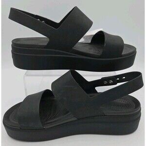 New CROCS Womens BROOKLYN LOW WEDGE SANDAL 206453-060 BLACK US Womens 11