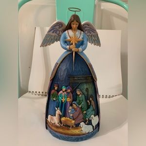 This is a beautiful Jim Shore Nativity Angel “Unto Us A Son Is Given.” It comes with the original box. Excellent condition however, there is a gift inscription written on the bottom. It’s hard to see since it’s written in dark marker (see last pic). The Angel is approximately 10.5 inches high.