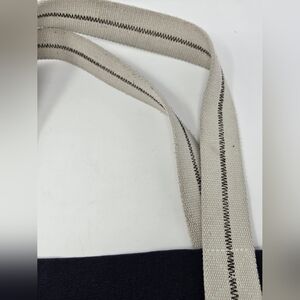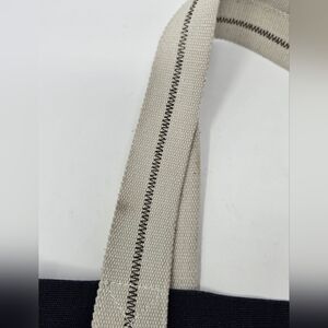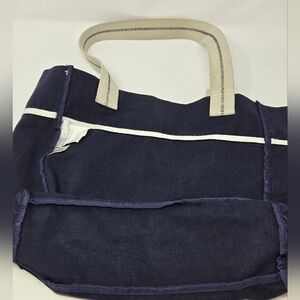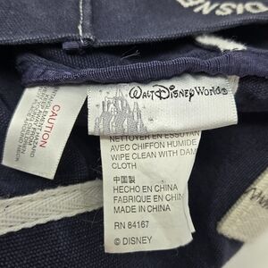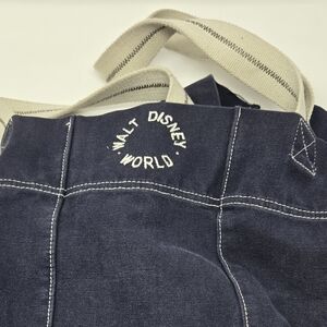 1. Disney Parks Walt Disney World WDW navy blue cotton canvas tote bag. Two top/shoulder canvas handles. Exposed white stitching. White Mickey Mouse silhouette/shadow on one side.