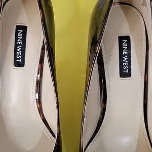 Nine West Tortoise Brown Pumps w/ Gold Chain LIKE NEW Size 8.5