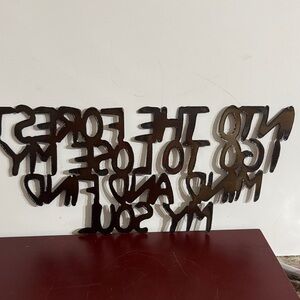 Discover tranquility with this rustic brown metal sculpture, perfect for nature lovers. Its forest-inspired quote adds a serene touch to any space.