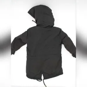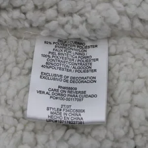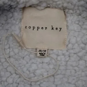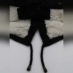 Gently worn twice, no flaws or stains. This Copper Key toddler jacket features a black outer shell with a cream faux-sherpa lining, including the hood. Details include gold-tone hardware, full zip and snap front closure, drawstring waist, and front pockets. Perfect for keeping little ones warm and stylish.