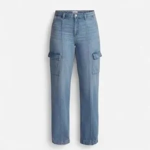 Time and Tru Women's Wide Leg Cargo Jeans, 31" Inseam
