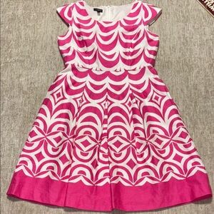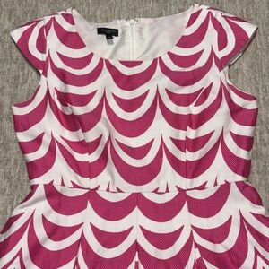 Talbots sz 4 petite small Dress hot pink and white cap sleeve fit flare texture