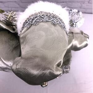 Christmas Silver White Faux Fur 16" Standing Ceramic Face Hands Collectible Sana