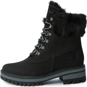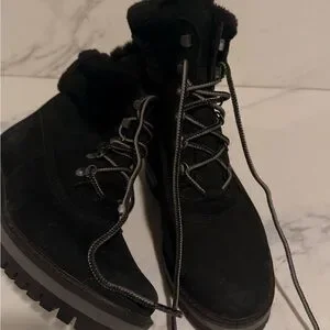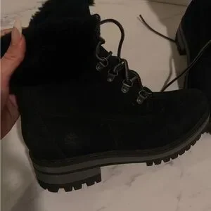 Black suede fur trim Timberland booties