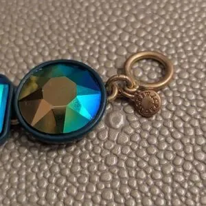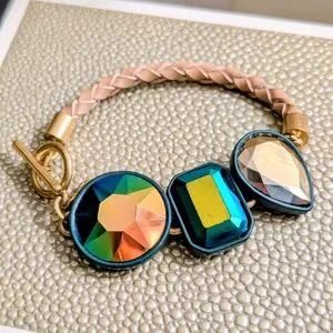 Stylish bracelet featuring multicolor gemstones and a braided band. Perfect for adding a pop of color to any outfit.