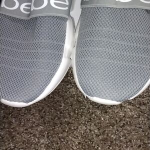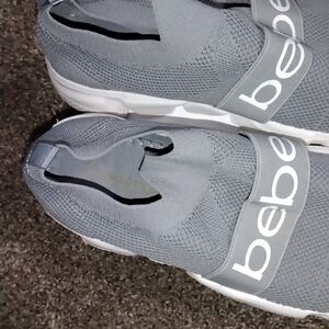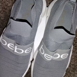 Chic charcoal slip-ons with signature Bebe logo. Easy to wear and fashionable.