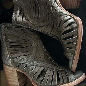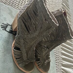 Stylish Bella Sandals in stone color. Intricate braided design that elevates your outfit. Open toe and heel.