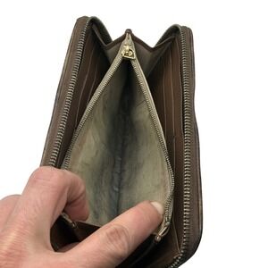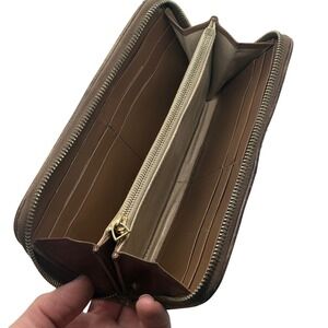 Keywords: designer wallet, luxury accessory, leather goods, handcrafted, Italian leather, zip wallet, continental wallet, structured, classic, everyday luxury, travel wallet, gift for herleather, interior is a prole missing but zipper functions fine. See the photos for condition detail details overall a beautiful wallet with a few flaws. So many miles left in her.