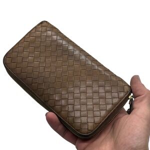 Bottega Veneta Intrecciato Woven Leather Zip Around Wallet Brown Made in Italy