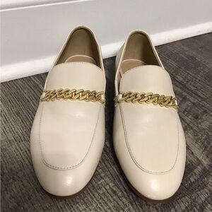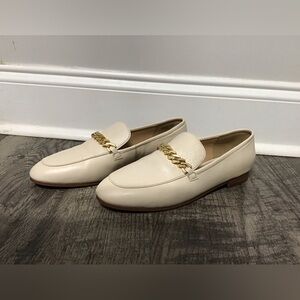 Ann Taylor Cream Leather Loafers with Gold Chain Size 7.5 Like New