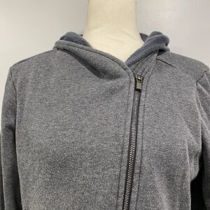 ATHLETA M Gray Easy Cozy Karma Warm Soft Asymmetrical Zip Hooded Jacket Athletic