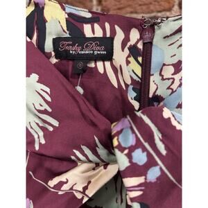 The Trashy Diva May Tie Dress in size 18 features a vibrant bordeaux fern pattern, perfect for adding a touch of floral elegance to your wardrobe. This fit and flare midi dress has short sleeves and a stylish tie closure, ideal for creating a flattering silhouette. The multicolor design adds a playful and feminine touch, making it a versatile option for various occasions.