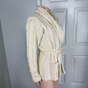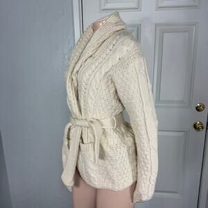 Aran Market Women's Sweater S Cardigan Tie Cable Knit Merino Wool Fisherman WW12