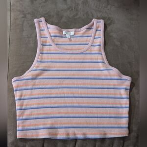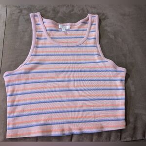 The Abound tank top showcases a chic blend of pink and blue hues in a fitted, cropped design. Crafted from a stretchy material, it offers a comfortable fit with a simple crew neckline. Ideal for casual outings, this top embodies a summery vibe with its pastel color palette.