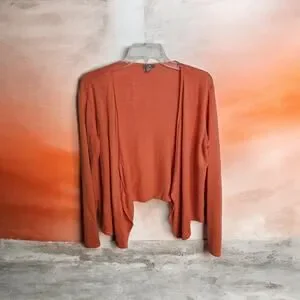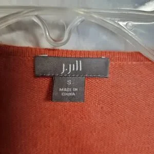 J Jill Linen Blend Cardigan Sweater Open Front Coral Orange Long Size Small 4-6