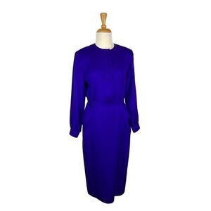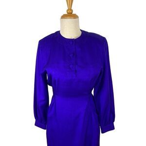 MBR International 6 S Cobalt Blue Silk Dress 1980s Does 1940s Volup VTG Midi