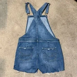 American Eagle Distressed Medium Wash Tomgirl Short Overalls Size L