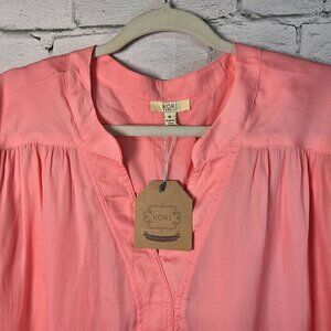 KORI AMERICAN VNECK SHORT SLEEVE BLOUSE CORAL WOMENS MED OVERSIZED NWT