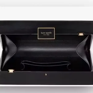 Elegant Kate Spade clutch featuring a chic design. Black base with gold and red details.