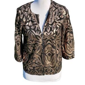 Joan Rivers Jacket Light Coat Women S Black Gold Sequin Glam Artsy Event Floral