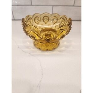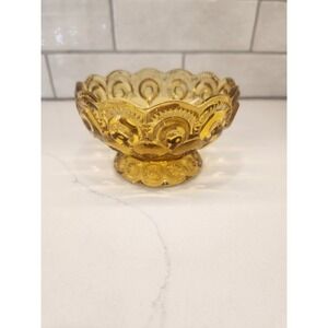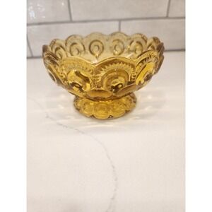 Nice vintage LE Smith amber moon and stars single taper candle holder. It would look pretty with potpourri or florals in the bowl on the base. No chips or cracks