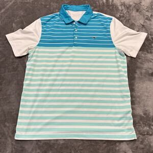 Vineyard Vines Performance Polo Shirt Mens Large Blue Stripes Preppy Rugby Golf