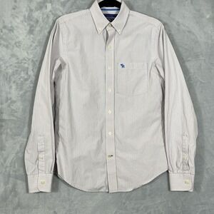 Abercrombie Fitch Shirt Mens Small White Stripe Button Muscle Y2K Moose Preppy