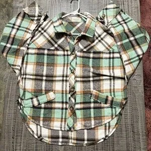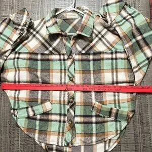Elevate your wardrobe with this stylish women's plaid button-down shirt. Featuring a classic combination of green, brown, and white, this shirt is perfect for casual outings and everyday wear.