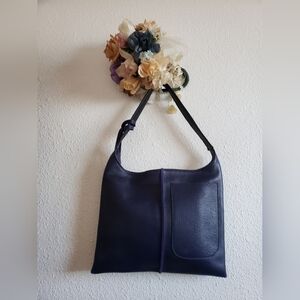 Cartera Artisan Made In San-Francisco Purple Leather Shoulder Bag. No lining ,suede inside . Zipper closure. One open pocket exterior . Open pocket interior . In mint New condition. Dimensions : height 11" width 13-2/8" strap drop 9" Great quality pebbled leather. Retaile $280.