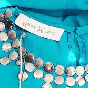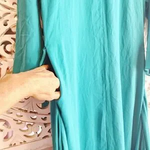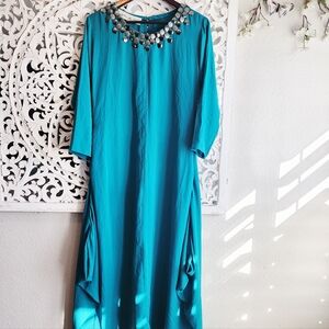 KOOMAL SOOD TEAL MAXI DRESS LONG SLEEVE NECK DETAIL SIZE MEDIUM