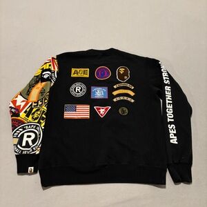 A Bathing Ape Sweatshirt Size XL Black Embroidery Patch Streetwear Y2K Style