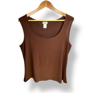 Classic and versatile brown tank top by Creative Design Works, Inc. in a soft, stretchy knit. Features a scoop neckline, sleeveless silhouette, and a smooth, lightweight fabric that drapes beautifully. Perfect for layering or wearing on its own.