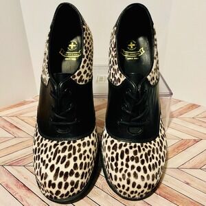 Dr Martens Sara Leopard Print Heeled Oxford Women 9 Shoes Hair On Black Leather