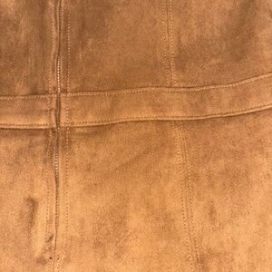 Ultra soft faux suede, fully double-lined with thick comfortable material, with deep front pockets and adjustable straps. Also featuring zipper on the back.