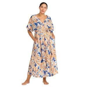 A wrap silhoeutte brings breezy energy to this flowy cotton cover-up dress made with handy pockets to stow your essentials. The Verdi shape is the perfect maxi dress for a warm summer's day! Designed specifically to be worn over your plus size swimwear, Verdi is made from 100% soft wash cotton fabric for a lightweight and breathable feel. Puff sleeves offer both a stylish touch and coverage on the upper arm.
