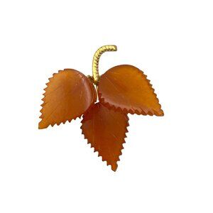 Baltic Amber Leaf Brooch Mid Century Gold Plate Vintage Hand Carved 4.68g 1.75"