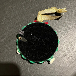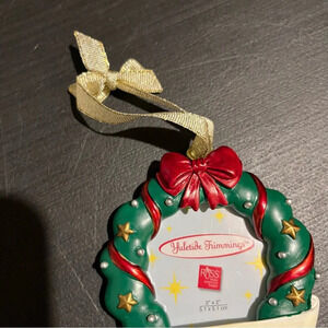 Christmas Photo Ornament Russ Wreath Red Bow & Family 2”x2” Photograph