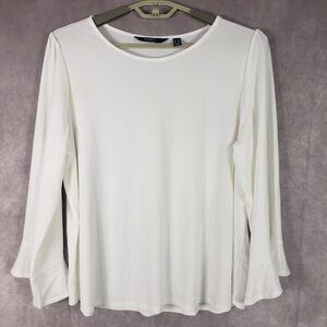 Dennis Basso Shirt Womens 1X Plus White Long Sleeve Bell Cuff Blouse Top