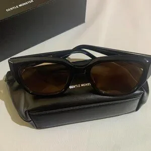 Comes with the original Gentle Monster box and protective case. Sleek black frames with chic brown lenses, perfect for adding a stylish touch to any outfit. Ideal for sunny days or as a trendy accessory. Don’t miss out on this almost - brand - new pair!