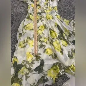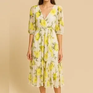 Calvin Klein Yellow Floral Chiffon Wrap Midi Dress Womenโs Size 6