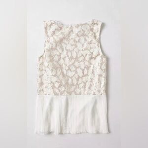 Anthropologie Meadow Rue Ivory & Gold Sequin Sleeveless Top Pleated Back M