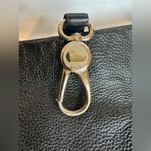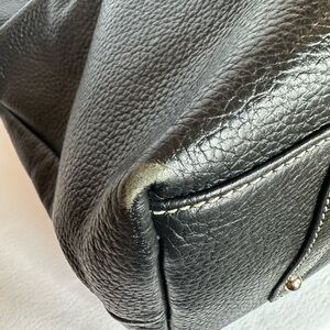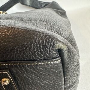 Dooney & Bourke Logo Lock Large Shoulder/Hobo Bag - Black Pebble Leather. Has some wear on the outside, as well as ink stains inside the bag. Please see photos for call outs. This is a gorgeous and timeless bag!