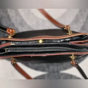 Step into heritage luxury with this authentic Bally shoulder tote, crafted in richly pebbled black leather and framed with warm chestnut trim.