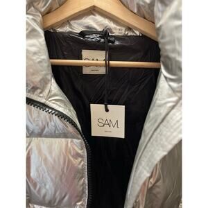 SAM New York jacket, SAM Freestyle puffer, silver down jacket, goose down coat, winter coat XS, glossy puffer jacket, water-resistant jacket, luxury down jacket, NWT SAM jacket, street style winter coat, urban winter puffer